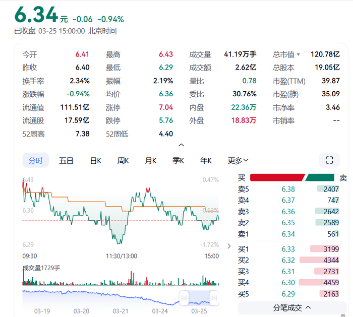 根据证券之星消息,截至2025年3月25日收盘,远光软件(002063)报收于6.34元,下跌0.94%,换手率2.34%,成交量41.19万手,成交额2.62亿元。