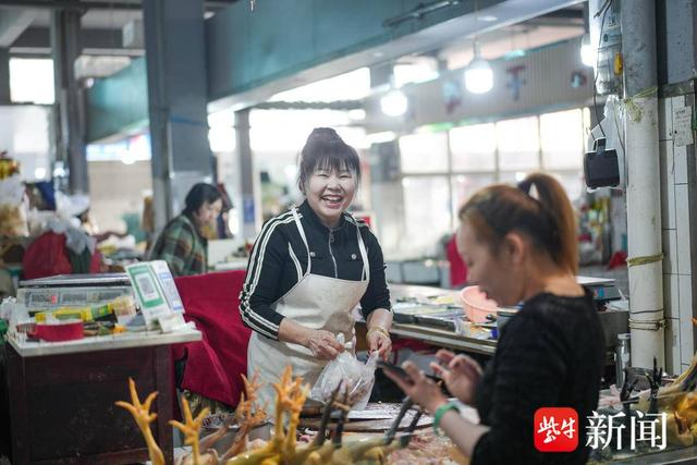 家禽摊前,谭仕花笑得很灿烂