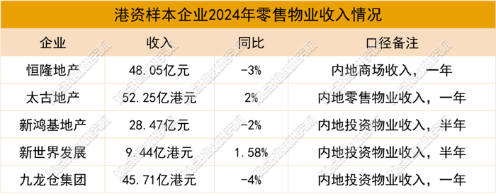 业绩上,在市场环境尚不明朗的情况下,港资企业整体租金收入呈下行趋势,仅少数企业录得轻微增长。