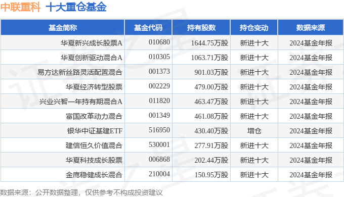 持有中联重科最多的基金为华夏新兴成长股票A,目前规模为34.72亿元,最新净值0.7547(3月25日),较上一交易日下跌1.07%,近一年上涨16.74%。该基金现任基金经理为张帆。