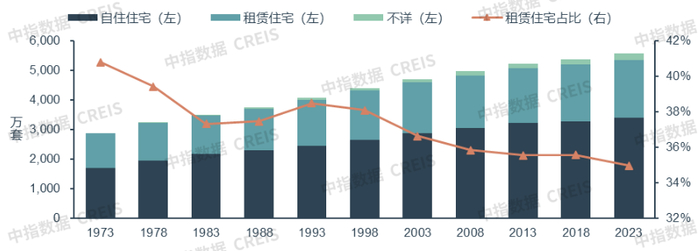 日本住房租赁市场从二战后开始发展,大概经历了三个阶段。第一阶段,20世纪60-70年代,随着战后经济恢复,大量人口涌入城市,住房租赁需求激增,住房供不应求,民营长租公寓企业纷纷成立,租赁住房供应规模逐步扩大;这一时期,租赁住宅新开工规模占比长期维持在40%以上。第二阶段,20世纪80年代,这一时期日本住房套户比已经超过1,整体住房供求关系有所缓和,但局部住房供应仍不充足;为了进一步增加租赁住房供应,1986年日本废止《地代家赁统制令》,取消了地租和房租上限,民营长租公寓迅速发展,供应数量激增,租赁住宅新开工规模占比一度超过50%。第三阶段,20世纪90年代后,随着经济泡沫破裂,日本开始加强住房租赁市场规范化发展;1991年日本出台新《借地借家法》,加强了对承租人的保护;2001年日本J-REIT正式发行,推动存量资产盘活,房地产证券化开始快速发展,租赁住宅成为REITs的重要底层资产;这一时期日本住房租赁市场平稳发展,租赁住宅新开工规模占比维持在35%-45%左右。值得注意的是,日本的租赁住宅与我国有明显不同,多数的日本租赁住宅是专门建设用于租赁的,其户型、公区等设计均出于租赁考量,日本较少有个人自住住房流入租赁市场。