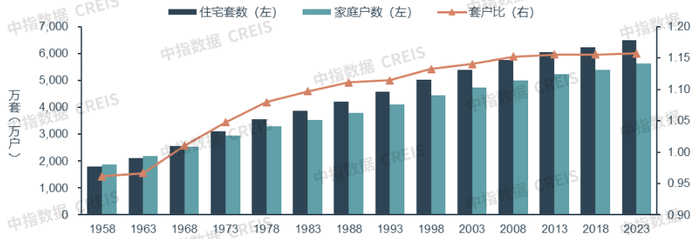 图:日本住宅套数与家庭户数变化