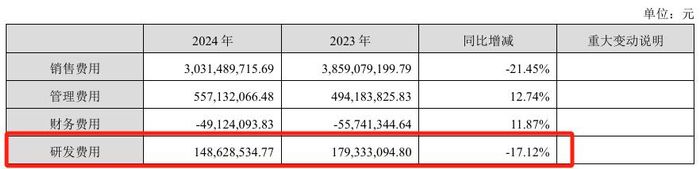 另需指出的是,汤臣倍健以研发技术为核心的产品力显然还有待提高。该公司2024年在研发领域的投入约为1.49亿元,不仅较2023年同期的1.79亿元下滑17.12%,与超30亿元的销售费用相比更是九牛一毛。