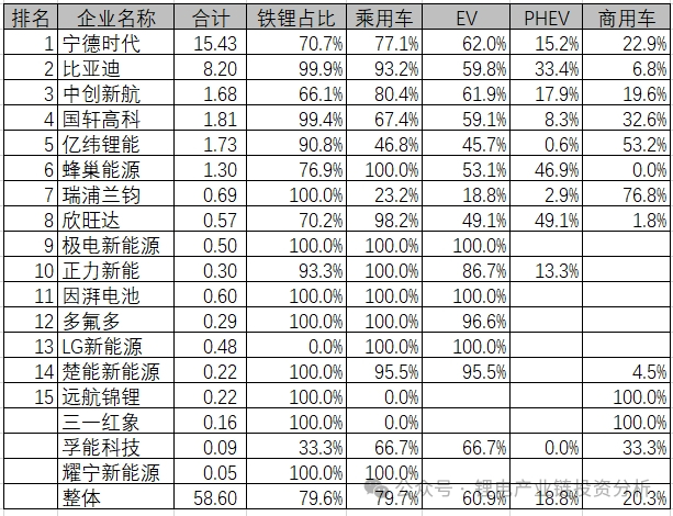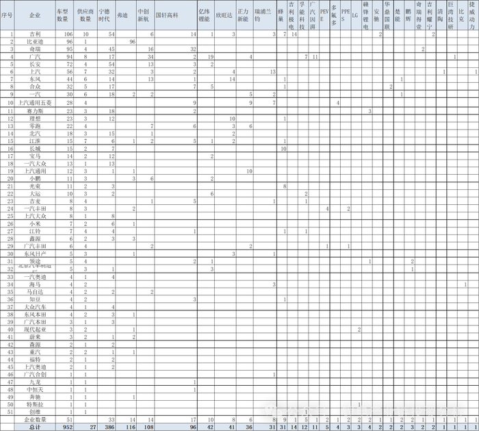 表:2024年新能源乘用车电池配套关系