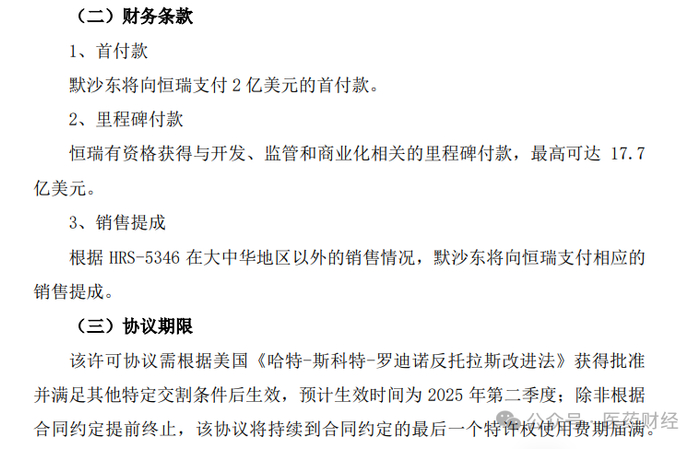 2025年3月25日,恒瑞医药与默沙东宣布就Lp(a)抑制剂HRS-5346达成跨境许可协议,交易金额高达19.7亿美元(2亿美元首付款+17.7亿美元里程碑款+销售提成)。
