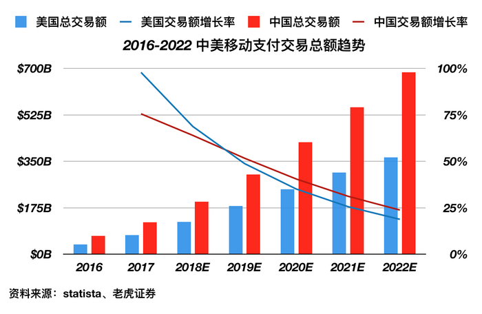目前预测,美国移动支付总额有望在2022年达到365.5亿美元,为今年的3倍。