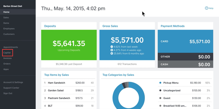 不仅如此,SQ还推出了针对小企业的贷款功能,集成到了SaaS系统中(上图红框)。
