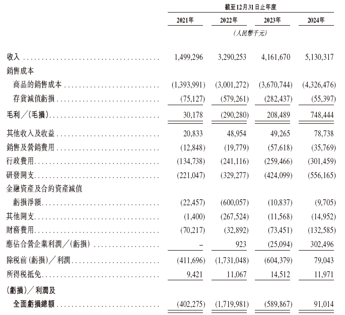 招股书显示,在过去的2021年、2022年、2023年和2024年,正力新能的营业收入别为人民币14.99亿、32.90亿、41.62亿和51.30亿元,相应的净利润分别为人民币-4.02亿、-17.20亿、-5.90亿和0.91亿元。