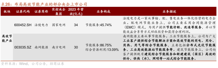 从产业环节上看,国家电网和南方电网旗下上市公司率先开展节能服务,通过提供能源服务方案实现节能目标,此外,部分工业制造类央企集团也逐步开展节能设备研究。