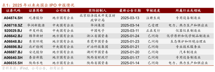近期多家战新产业领域央企获资本市场支持。3月6日,证监会主席在十四届全国人大三次会议经济主题记者会上表示,加快健全专门针对科技企业的支持机制,更精准支持优质科技企业发行上市。监管部门对科技创新企业的支持已迅速体现在资本市场上。以科技领域央国企的股权融资动向为例,北京国资控股的半导体设备企业屹唐股份,于3月13日获批科创板IPO注册;中国电子旗下的智慧能源管理企业开发科技,于3月11日获批北交所IPO注册。此外,华润集团旗下的华润新能源主板IPO申请也于3月14日获受理。