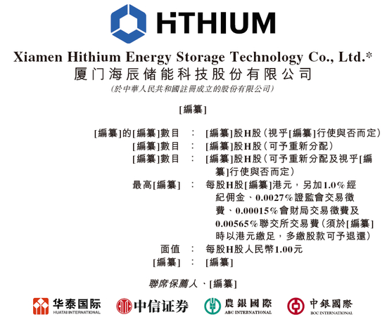 2025年3月25日,厦门海辰储能科技股份有限公司 Xiamen Hithium Energy Storage Technology Co., Ltd.(下称“海辰储能”)在港交所递交招股书,拟在香港主板上市。