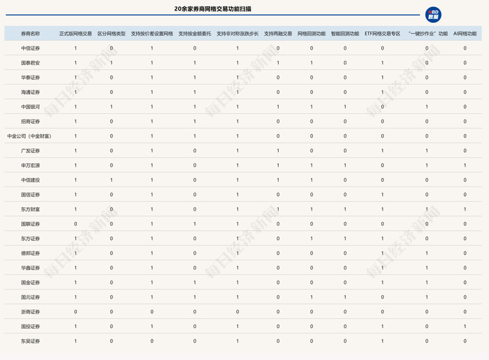 最近,《每日经济新闻》记者梳理了20余家主流券商网格交易系统的各项功能,在此呈现给大家。