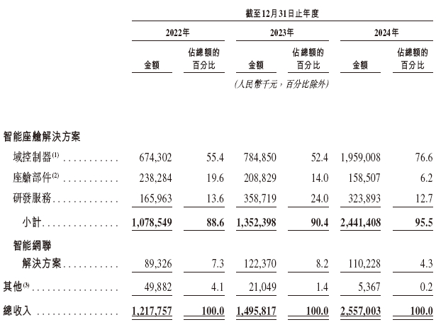 博泰车联网的收入来自(i)销售智能座舱解决方案;(ii)向OEM提供整体智能网联解决方案;及(iii)其他,主要包括销售车规级芯片。
