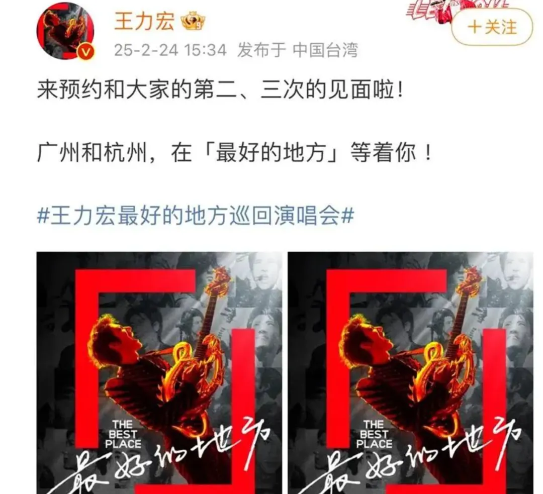 2025年,王力宏官宣“最好的地方”巡回演唱会在南昌、广州、杭州等地举办。