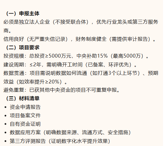 近日,从相关部委获悉,2025年数字经济中央预算内投资专项(数字化转型试点方向)项目储备工作已经启动,项目由国家数据局组织专家评审!