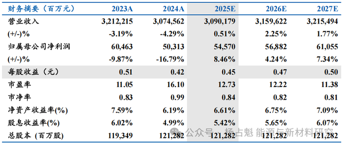 据公司2024年年报,2024年公司实现营收30745.62亿元,同比-4.29%,归母净利润503.13亿元,同比-16.79%,扣非归母净利润480.57亿元,同比-20.82%。2024Q4公司实现营收7080.21亿元,同比-4.61%,归母净利润60.66亿元,同比-19.09%,扣非归母净利润40.90亿元,同比-60.72%。