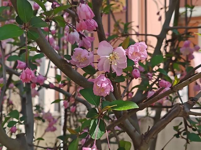 随着春意越来越浓,桃花也加入了这个缤纷的春天。桃花多是像腮红一样白里透红的粉色,而非纯白色。并且,不同于樱花、海棠花、梨花等等大多是椭圆、卵形等叶片形状,桃花叶子细长,极易辨认。