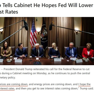 在当地时间24日召开的白宫内阁会议上,美国总统特朗普再次敦促美联储放松货币政策。
