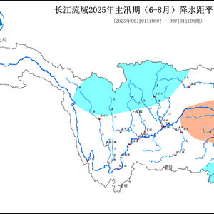 根据最新预测,2025年汛期(4~10月),长江流域气候年景总体偏差,流域降水量正常偏少,降水时空分布不均,其中,长江上游基本正常,长江中下游正常偏少。主汛期(6~8月),长江流域降水量偏少,其中,长江上游基本正常、中下游偏少,中游干流附近偏少可能达2成以上。