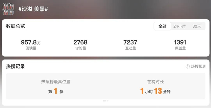 随后,话题#沙溢 美黑#冲上热搜榜第一。