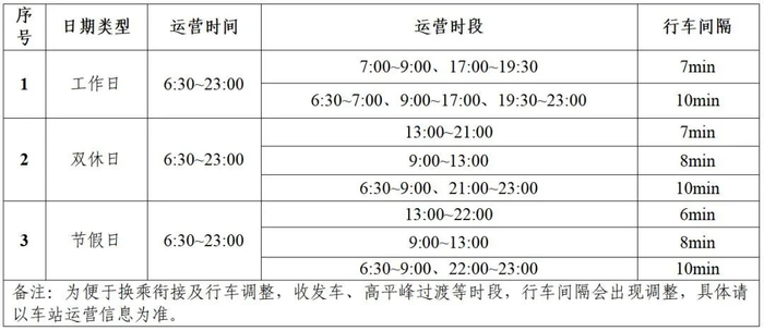 “洛阳轨道交通”微信公众号发布消息称,第42届中国洛阳牡丹文化节即将到来,为持续提高服务质量,全面提升市民游客出行体验,洛阳地铁计划自2025年4月1日起对线网运输组织进行调整。调整后,线网运营时间常态化延长至23:00,为6:30~23:00,最小行车间隔为6分钟,具体行车安排如下表: