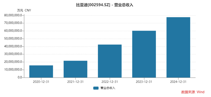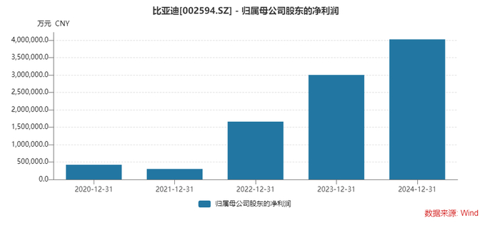 2024年,比亚迪营收7771亿元,归母净利润402.5亿元,同比增幅分别达29%和34%,核心指标均创历史新高。