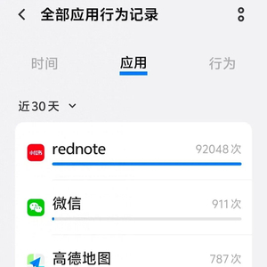 一位用户小V(化名)告诉记者,她是头一天偶然刷到有人吐槽小红书后台访问量过高,出于好奇点开安卓手机的隐私项查看,发现自己的数据同样惊人:近30天内小红书应用访问总量高达9.2万次,遥遥领先于第二位的微信,只有911次。全部应用行为记录显示,其中的地址访问最为频繁,高达7.1万次,仅3月25日当天就访问了2148次。