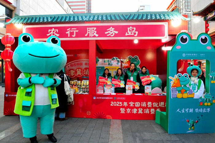 ▲农行河北分行在2025年全国消费促进月暨京津冀消费季活动现场设立“农行服务岛”,为参展商户和消费者提供一站式金融服务。