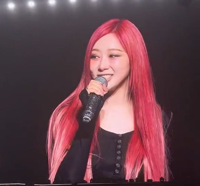 aespa女团成员giselle在首尔演唱会上说出揽佬歌曲的歌词:"老天保佑金山银山全都有"