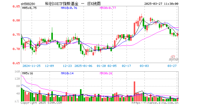 科创50ETF指数基金(588280)涨1.34%,半日成交额1254.35万元