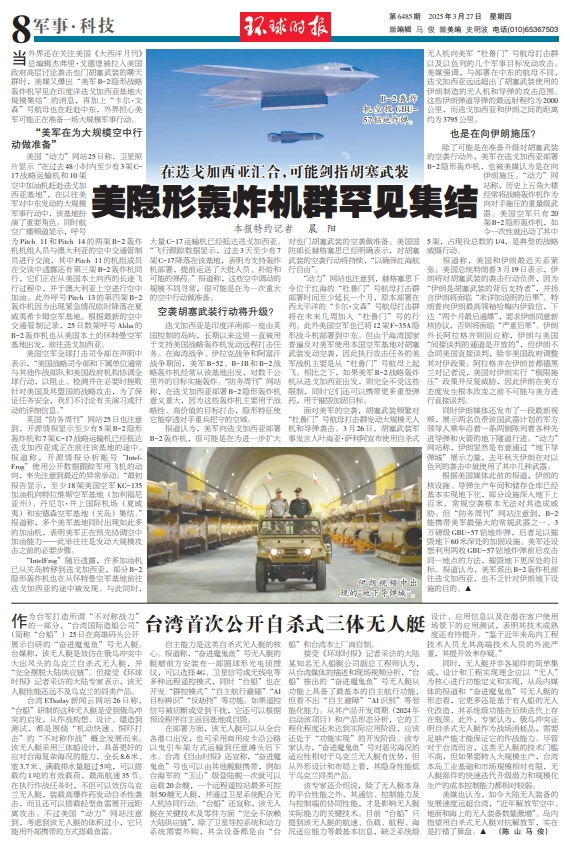 “动力”网站也注意到,赫格塞思下令位于红海的“杜鲁门”号航母打击群部署时间至少延长一个月,原本部署在西太平洋的“卡尔·文森”号航母打击群将在未来几周加入“杜鲁门”号的行列。此外美国空军也已将12架F-35A隐形战斗机部署到中东。但由于海湾国家普遍反对美军使用本国空军基地对胡塞武装发动空袭,因此执行攻击任务的美军战机主要是从“杜鲁门”号航母上起飞。相比之下,如果美军B-2战略轰炸机从迭戈加西亚出发,则完全不受这些限制,同时它们还可以携带更多重型弹药,用于摧毁加固目标。