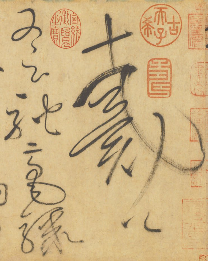 散卓笔是蔡邕书写散隶(也就是章草)的首选笔,汉代时期就有。散卓就是一种或者两种毛散扎而成的无心笔。北宋中后期,“无心散卓笔”逐渐取代唐代盛行的有心笔,据说宣州诸葛氏坚持使用三副笔而不做无心散卓笔,最终使得700年家道由盛而衰。散卓笔的流行势不可挡,取消笔柱结构,采用单一毛料,比如长锋羊毫,使笔锋更柔软、蓄墨量更大。何谓“长锋”?当出锋是笔杆直径的4.5倍时,可称为中锋笔,超出这个比例的笔则是长锋。宋代书家选择长锋毛笔恰到好处地表现他们的纸上驰骋的动态。黄庭坚的行书《松风阁诗帖》中拉长的笔画与绞转笔法,正是依赖无心笔的散锋特性,实现“沉着痛快”的意境。米芾更以“八面出锋”著称,其《蜀素帖》中侧锋取势、提按迅捷的变化,反映了宋代笔法对工具性能的极致探索。苏轼则偏爱短锋软毫笔,这可能和他单钩执笔、不悬腕的习惯有关,因此写出“石压蛤蟆”的趣味形态。
