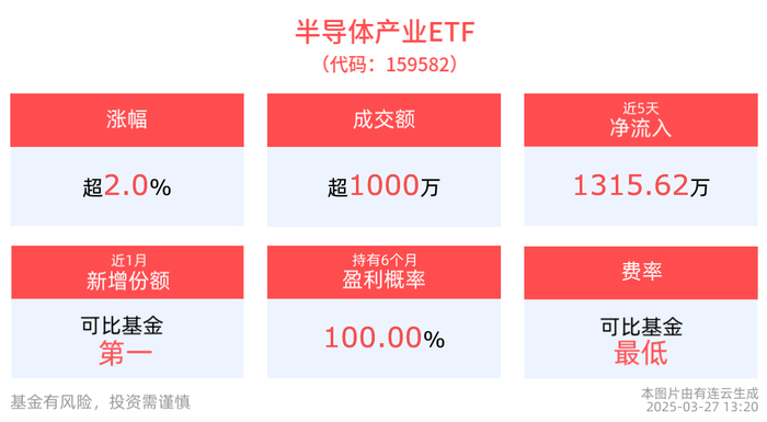 拉长时间看,截至2025年3月26日,半导体产业ETF近半年累计上涨45.69%。