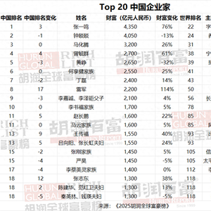 今年中国共有91位新上榜企业家。包括:DeepSeek的梁文锋,财富330亿元;老铺黄金(06181.HK)的徐高明、徐东波父子,财富270亿元;现制饮品企业古茗的王云安,财富90亿元;毛戈平化妆品的毛戈平、汪立群夫妇,财富125亿元;中式餐饮品牌小菜园的汪书高,财富90亿元。