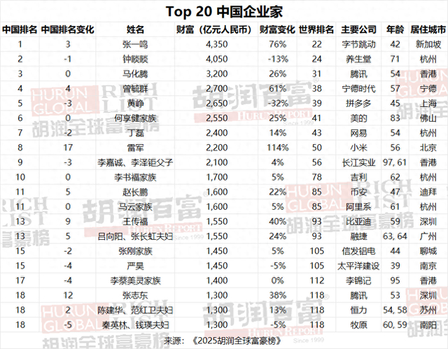张一鸣取代钟睒睒成中国首富,雷军跻身中国第八,DeepSeek创始人首登榜单