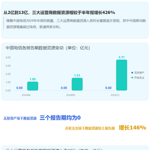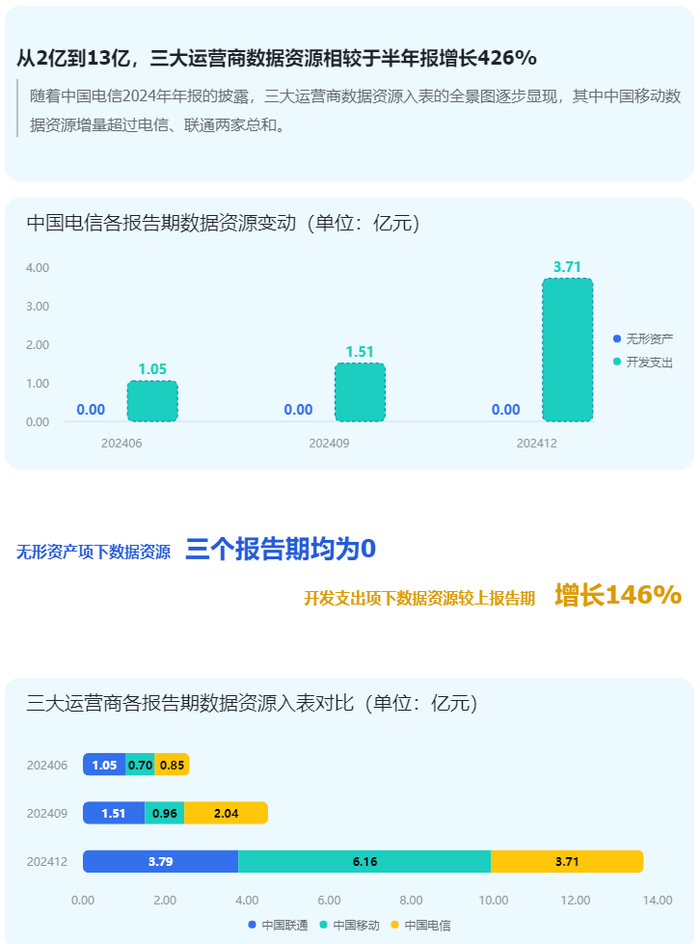 中国电信披露3.71亿元数据资产,三大运营商入表金额大增426%至13亿元