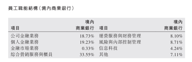 员工职能结构(中国内地商业银行)如下:
