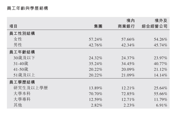 2024年末,中国银行共有员工312757人,较2023年增加5826人。