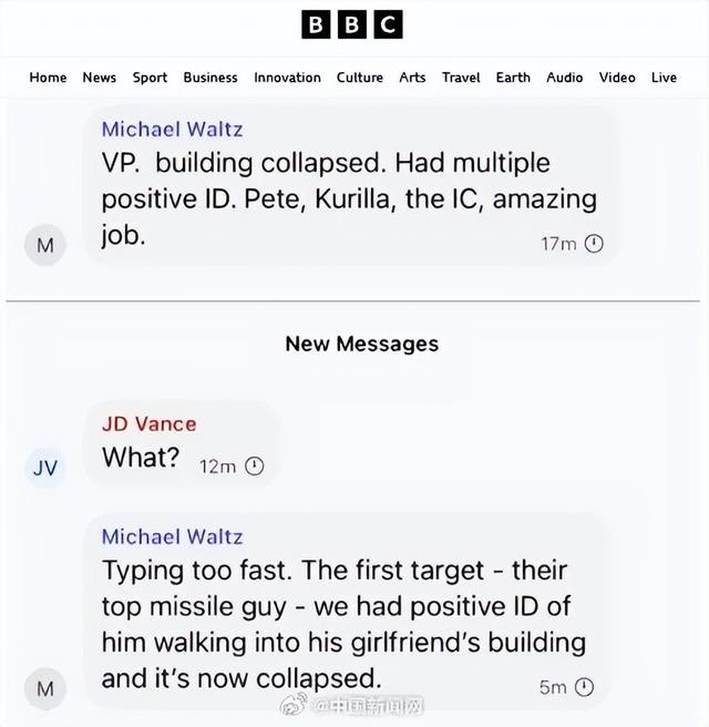 在群聊的后一部分,白宫国家安全顾问沃尔兹提供了这次袭击的最新通报,称“(目标所在)建筑已炸塌”,并补充了更多详情。