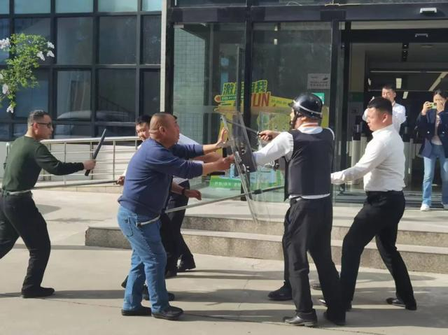 此次演练模拟了多名“暴恐分子”闯入园区,企图制造混乱和伤害员工的场景。园区安保人员在发现“暴恐分子”后,立即启动应急预案,通过对讲机呼叫附近的安保人员,并迅速组成最小作战单元,手持防暴器械赶赴现场。在派出所民警到达之前,物业安保人员按照所学的战术和技巧,相互配合,利用盾牌进行防护,钢叉控制“暴恐分子”的行动,警棍进行威慑,成功将“暴恐分子”控制在一定范围内,防止其进一步伤害他人。随后,派出所民警赶到现场,与物业安保人员一起将“暴恐分子”制服并带离现场。