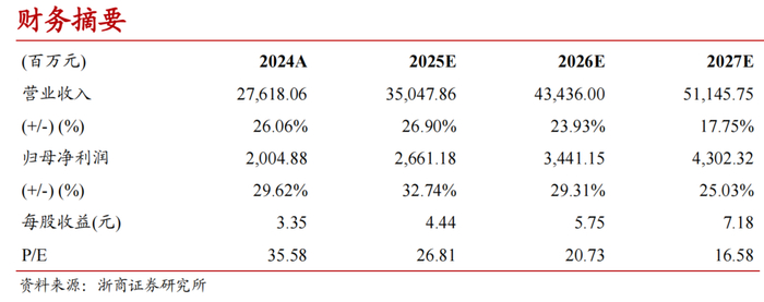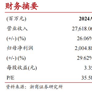 公司发布2024年年报,2024年全年实现营业收入276.18亿元,同比增长26.06%;归母净利润20.05亿元,同比增长29.62%,扣非后归母净利润19.46亿元,同比增长32.66%。