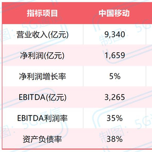 三大运营商的EBITDA(息税折旧摊销前利润)分别为:中国移动3265亿元、中国电信1309亿元和中国联通930亿元,EBITDA利润率分别为35%、28%和25%,表明中国移动在运营效率方面仍具有明显优势。