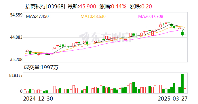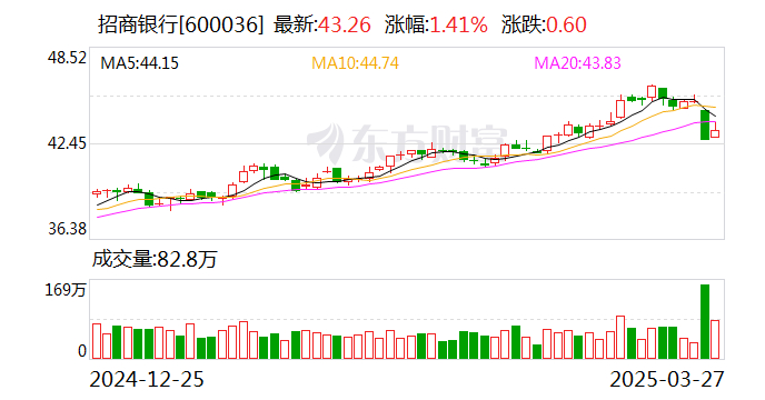 对于分红,该行在业绩会上也进行了回应。“有投资者希望分红更高,但保持比较高、比较稳定的分红比例,对投资者价值的创造比较重要”,招商银行管理层指出,“如果今年提升了分红比例,明年又降低了,对于投资者的价值创造不利,反而不利于可持续发展,不利于股价的稳定。招商银行制定了市值管理办法,但其核心归根结底是增强盈利能力、风控能力和创新能力,以此增强招商银行的核心竞争力,为市值提供坚实支撑。”截至3月27日收盘,招商银行股价报43.26元/股,涨幅为1.41%。