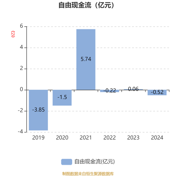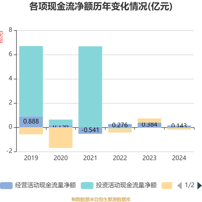 截至2024年,公司经营活动现金流净额为1427.99万元,同比下降62.78%;筹资活动现金流净额-1330.16万元,同比减少4810.59万元;投资活动现金流净额-640.31万元,上年同期为-508.9万元。