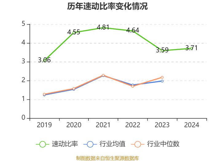 2024年,公司流动比率为4.3,速动比率为3.71。