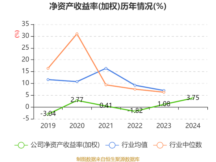 数据显示,2024年公司加权平均净资产收益率为3.75%,较上年同期上升2.67个百分点。公司2024年投入资本回报率为2.4%,较上年同期上升2.62个百分点。