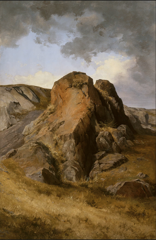 贝拉斯科于1894年创作的油画《岩石》(Rocks)在尺寸和形式上都堪比一幅巨幅肖像画,但画的中心并非描绘穿着塔夫绸或燕尾服的社交名媛,而是一块块巨大的红褐色岩层。这并非一个非常特别的岩层,而是可以在任何山间漫步时都能遇到的那种岩块。