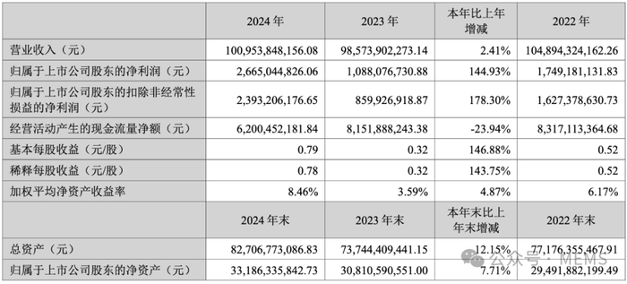 2024年,歌尔股份实现营业收入1009.5亿元,同比增长2.41%;实现归属于上市公司股东的净利润26.7亿元,同比增长144.93%。公司营业成本 897.6亿元,同比增长0.01%。公司研发投入45.7亿元,占营业收入的比重为4.53%,占最近一期经审计归属于上市公司股东的净资产的13.77%。