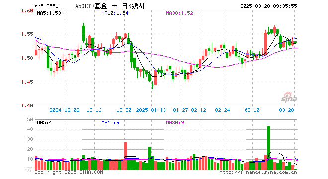 3月28日,A50ETF基金(512550)开盘涨0.00%,报1.534元。A50ETF基金(512550)重仓股方面,贵州茅台开盘涨0.12%,宁德时代跌1.07%,招商银行涨0.09%,长江电力跌0.04%,中国平安涨0.27%,五粮液涨0.13%,工商银行跌0.15%,比亚迪涨0.00%,农业银行跌0.19%,东方财富涨0.26%。