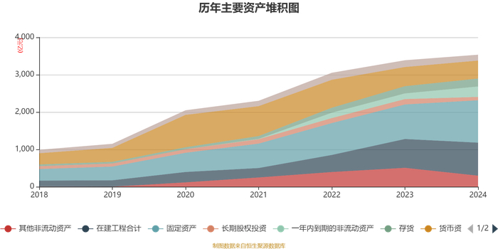 资产重大变化方面,截至2024年末,公司其他非流动资产较上年末减少41.59%,占公司总资产比重下降6.6个百分点;固定资产较上年末增加22.84%,占公司总资产比重上升4.82个百分点;一年内到期的非流动资产较上年末增加84.89%,占公司总资产比重上升3.44个百分点;在建工程合计较上年末增加14.64%,占公司总资产比重上升2.23个百分点。